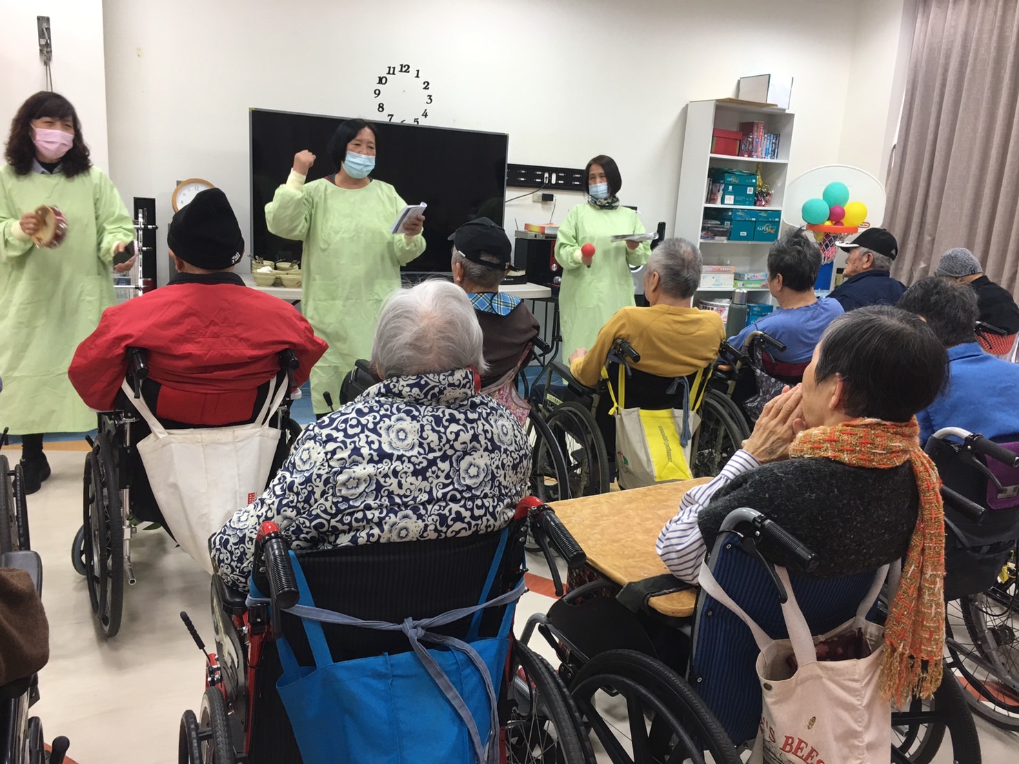 114/04/03 花花愛心公益團義演... 2025-04-04 感謝花花愛心公益團蒞臨本中心表演,為長... 114/03/23 北投農會日本舞踊班 ... 2025-03-24 112/12/21 旭東幼兒園表演... 2023-12-21 感謝旭東幼兒園小朋友在中心的精彩舞蹈表... 112/07/07 如實行益會表演... 2023-07-31 112/06/09 晶彩表演團... 2023-06-30 112/05/26 慈馨文化發展協會... 2023-05-31 112/05/10 戀戀北投愛心公益團母... 2023-05-31 112/04/30 北投農會日本舞表演團... 2023-04-30 112/04/14 快樂義工團隊... 2023-04-30 112/04/11 百合愛心表演團... 2023-04-30 112/04/10 公益貼紮活動... 2023-04-30 112/3/19 北極星關懷團隊... 2023-03-20 感謝北極星關懷團隊的隊員,精彩的表演讓... 112/1/18 圍爐活動... 2023-01-18 一年一度的新年即將到來,中心特別策劃圍... 112/1/12 花花愛心公益團演出... 2023-01-12 112/01/13 綵衣娛親 慶新年... 111/12/23 精油芳療協會... 2022-12-23 邀請精油芳療師到中心為爺爺奶奶精油按摩... 111/12/21 旭東幼兒園聖誕表演... 2022-12-21 聖誕節前夕,旭東幼兒園老師帶著小朋友們... 111/8/12 園藝輔療活動... 2022-08-13 111/8/8 父親節彩繪扇子... 2022-08-08 爺爺開心的彩繪屬於自己的扇子 七... 111/8/3 約書亞團契... 2022-08-03 111/7/27 義剪活動... 2022-07-27 111/7/26 慶生會活動... 2022-07-26 111/4/6 約書亞團契... 2022-04-07 111/3/30 義剪活動... 2022-04-07 111/3/17 下肢活動訓練... 2022-04-07 專業職能治療師帶領長輩伸展筋骨 ... 111/3/11 園藝治療活動... 2022-03-11 111/3/2 約書亞團契... 2022-03-02 111/2/9 約書亞團契... 2022-02-09 111/1/27 春節圍爐活動... 2022-01-19 豐富的食材供爺爺奶奶選擇 活動小... 111/1/18 梅門平甩功活動... 2022-01-18 110/12/23 員工交換禮物活動... 2021-12-23 110/12/16 師大音樂系表演... 2021-12-16 師大音樂系學生表演鋼琴演奏給爺爺... 110/12/10 園藝輔療活動... 2021-12-10 110/11/22 梅門平甩功活動... 2021-11-22 梅門平甩功活動 ... 110/11/12 園藝輔療活動... 2021-11-12 110/10/24三重高中美術社-藍染... 2021-10-24 三重高中美術社學生協助長輩進行藍染活動... 110/05/01 日本舞表演活動... 2021-05-01 110/03/07 北極星關懷團隊義演... 2021-03-07 110/02/06 北投社大陶笛班表演... 2021-02-06 110/02/04 住民員工圍爐活動... 2021-02-04 爺爺奶奶摸彩活動,長輩拿到禮物顯得不亦... 道生110年旺年會影片... 2021-01-26 https://www.youtub... 110/01/26 北投文化基金會-冬季... 2021-01-26 110/01/25 梅門平甩功活動... 2021-01-25 110/01/13 狗醫生動物輔療... 2021-01-13 109/8/7 中華天使心身障才藝展演協... 2020-08-07 為感謝天下父親辛勞為家庭貢獻的精神,特... 109/6/24 端午粽子塗鴉趣... 2020-06-24 端午節,阿公阿嬤動動手,畫出自己想要的... 1081015何歡劇團義演... 2019-10-16 何歡劇組裡的成員賣力... 1081001黑皮樂團 2019-10-07 20190926中山社區大學日本舞踴班... 2019-10-07 20190925道生院-名留義剪活動... 2019-09-25 名留專業沙龍團隊,到道生院進行愛心義... 20180310聖道堂關懷慰問活動... 2018-07-12 20180508母親節活動-天華幼稚園慰... 2018-07-12 20180614端午節活動-包粽子... 2018-07-12 20180703北投社大吉他社義演... 2018-07-12 20180709地板球活動... 2018-07-12 20180618小小志工來下棋... 2018-07-12 20180613上半年家屬座談會活動-老... 2018-07-12 20180606 U-life台灣優質生... 2018-07-12 20180606 carf 認證 2018-07-12 20180530台灣狗醫生活動... 2018-07-12 20180526台北聖道堂關懷慰問活動... 2018-07-12 20180523地板球活動... 2018-07-12 20180507母親節活動-美顏活動... 2018-07-12 20180427上半年道生春遊活動-10... 2018-07-12 20180423國立台北藝術大學音樂系-... 2018-07-12 20180421歡迎中國北大校友台灣農業... 2018-07-12 20180409認知訓練-下棋趣... 2018-07-12 20180329戶外打球活動... 2018-07-12 20180325雙喜戲劇坊... 2018-07-12 20180317台灣民謠月琴協會... 2018-07-12 20180316認知訓練-麻將(固定每週... 2018-07-12 20180221合一基金會心靈放鬆及舞蹈... 2018-07-12 20180206慶過年包元寶活動... 2018-07-12 20180131小小志工摺紙飛機活動... 2018-07-12 20180117認知訓練-書法練習... 2018-07-12 20180116文化基金會每月衛教團體活... 2018-07-12 20180114快樂歌手樂團義演活動... 2018-07-12 20180110火把教會享家全人發展協會... 2018-07-12 20180109 北投社大吉他社... 2018-07-12 201709義剪 2015-11-19 201709義剪 201709慶生會 2015-10-13 201709慶生會 20170914韓國福音歌手來訪... 2015-10-13 20170914韓國福音歌手來訪... 20170916快樂歌手樂團表演... 2013-12-30 20170916快樂歌手樂團表演... 20170926醫師衛教--流感... 2013-12-16 20170926醫師衛教--流感...