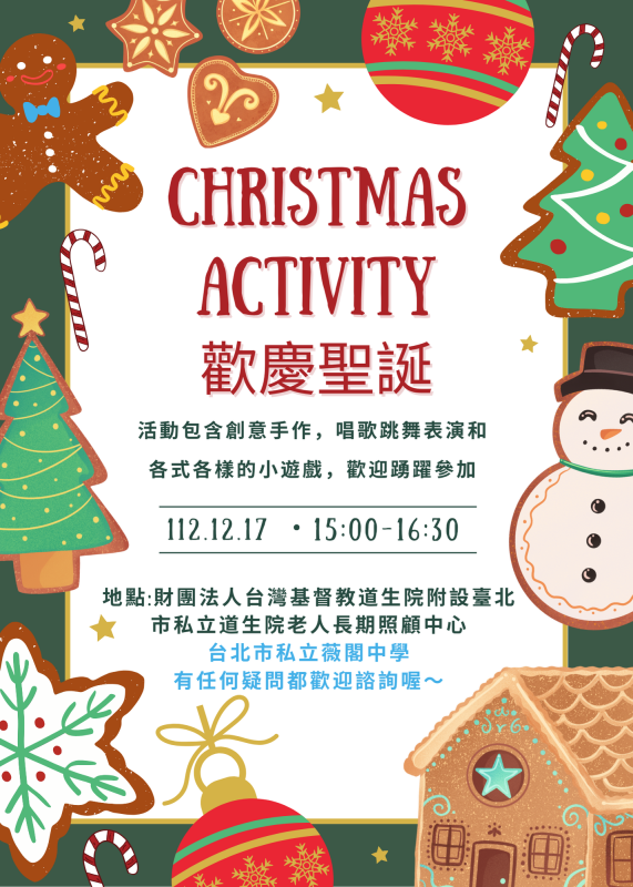 活動訊息 [活動]112/12/17 薇閣高中手作活動 Posted on 2023-12-062023-12-12 by 社工 15:00-16:00 [活動]112/12/16 北投社大陶笛班 [活動]112/12/19 梅門平甩功